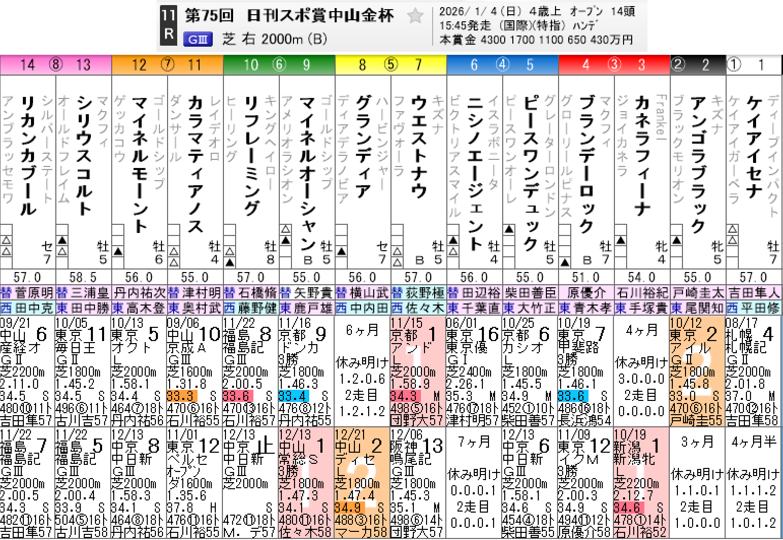 - 前走: チャレンジC、ディセンバーS、マイルCS組