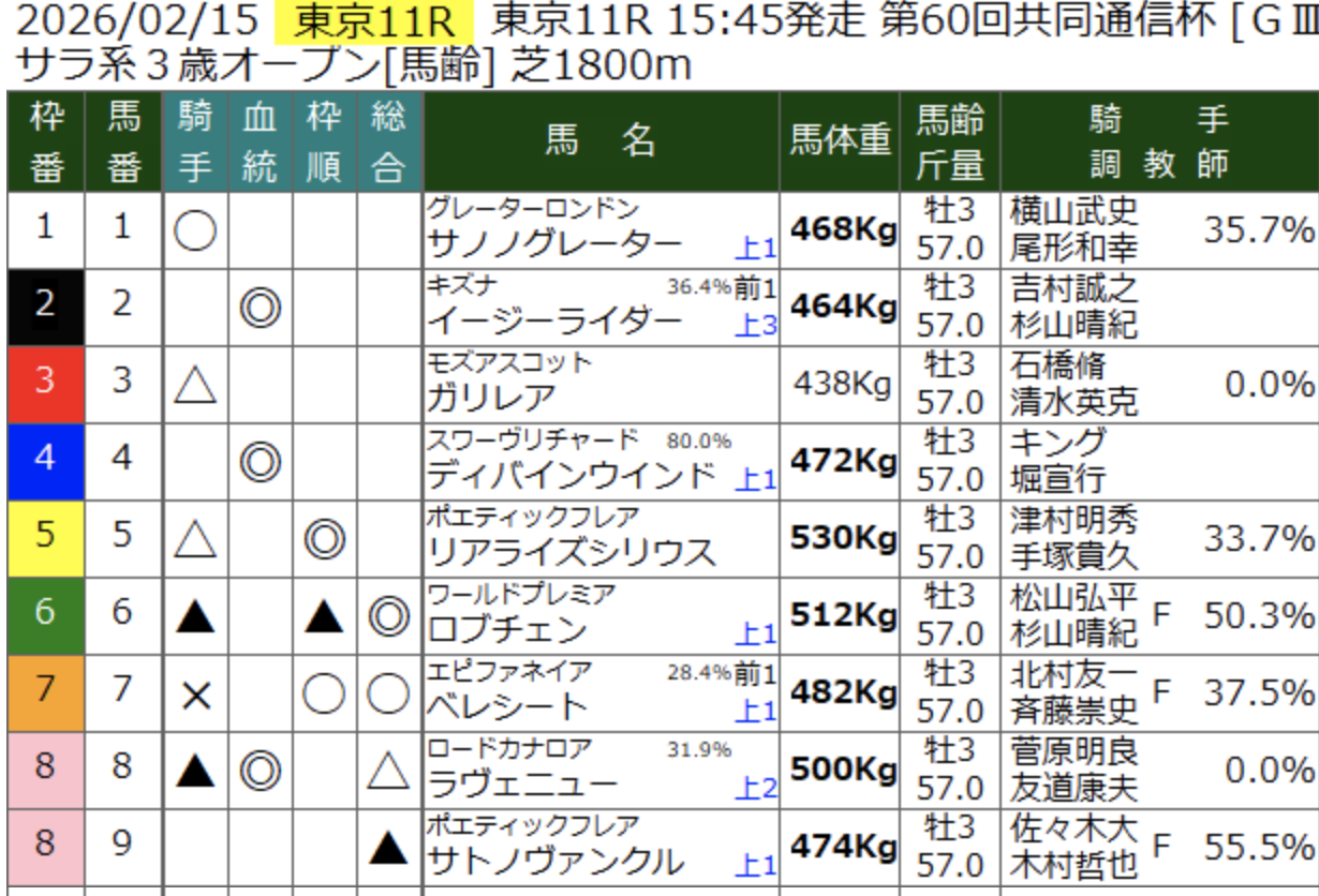 ★第60回 共同通信杯(GIII)穴馬はこちらをクリック