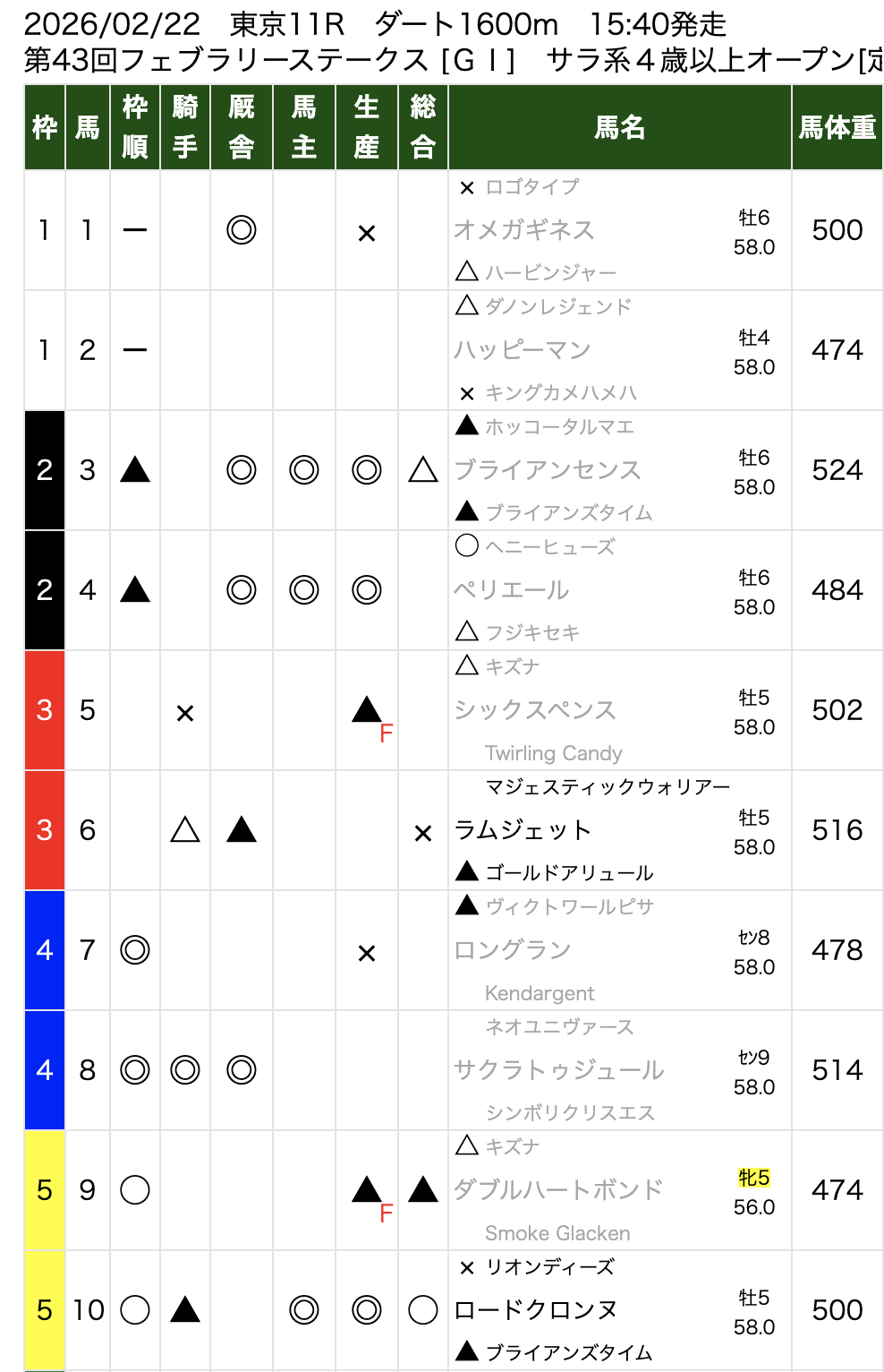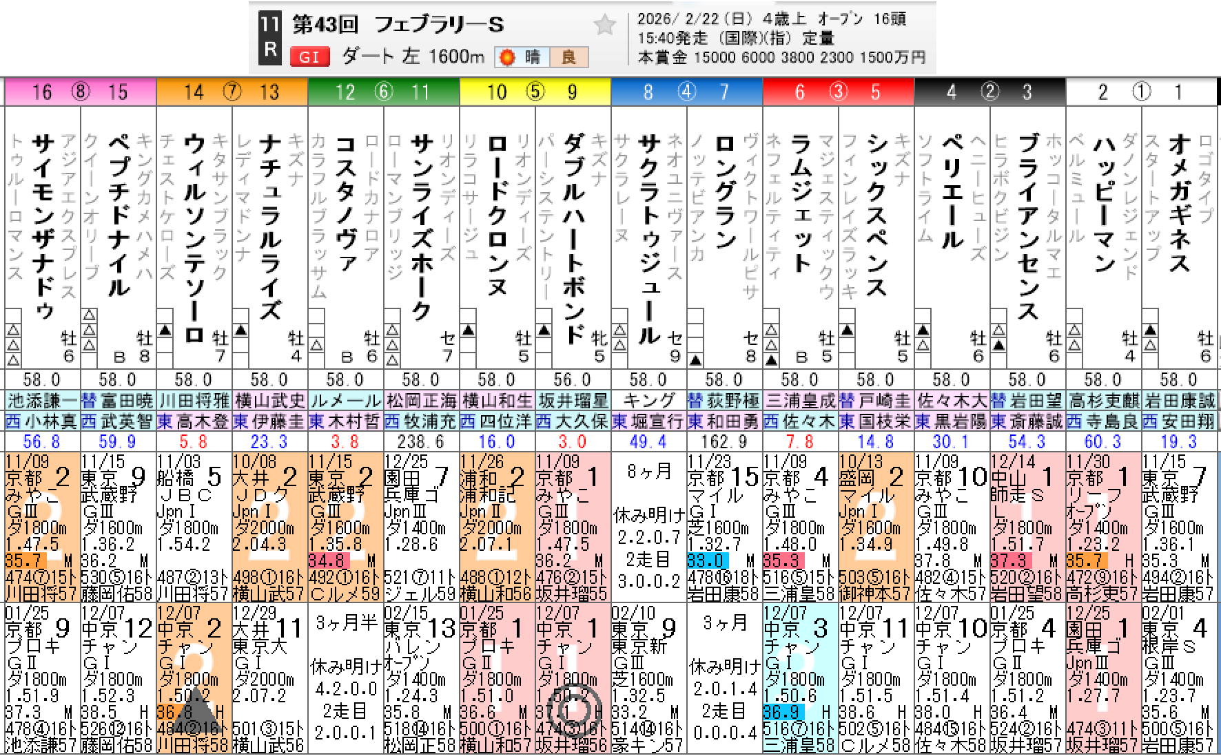 第43回 フェブラリーステークス(GI)最終結論!